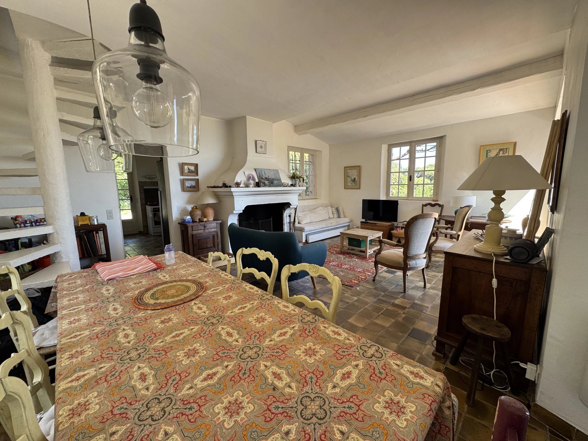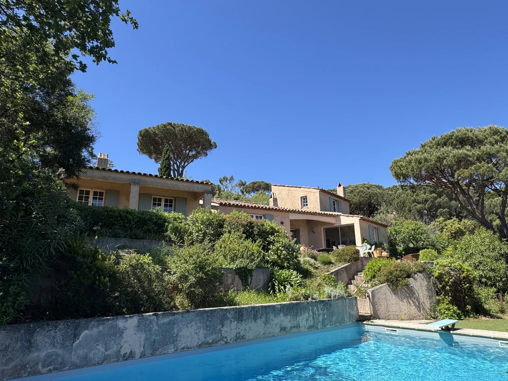 A proximité immédiate de la plage, au coeur d'un domaine privé et prisé, ravissante villa de 220 m2 environ avec annexes, offrant une magnifique vue sur la mer et la chaine des Alpes du Sud. La propriété se compose d'un bâti avec entrée, cuisine, séjour & cheminée, coin salle à manger, 1 chambre, salle de bains & WC séparé. A l'étage une chambre & lavabo. Une annexe offrant pièce de vie & cheminée, cuisine à l'américaine, 2 chambres, 1 salle d'eau & WC. Un patio à l'arrière avec une chambre, salle d'eau & WC. Toutes les pièces principales ouvrant sur les terrasses et la vue mer. La piscine de belle taille (12x6m) est entourée de verdure, offrant une intimité à l'abri des regards tout en bénéficiant de la vue mer. Garage & places de parking. Nichée dans une végétation méditerranéenne, de style provençal nécessitant des travaux de rafraichissement, la propriété offre tout le charme Méditerranéen à seulement quelques centaines de mètres d'une des plages les plus réputées de la presqu'île et des criques aux eaux turquoises... Un vrai havre de paix à saisir !